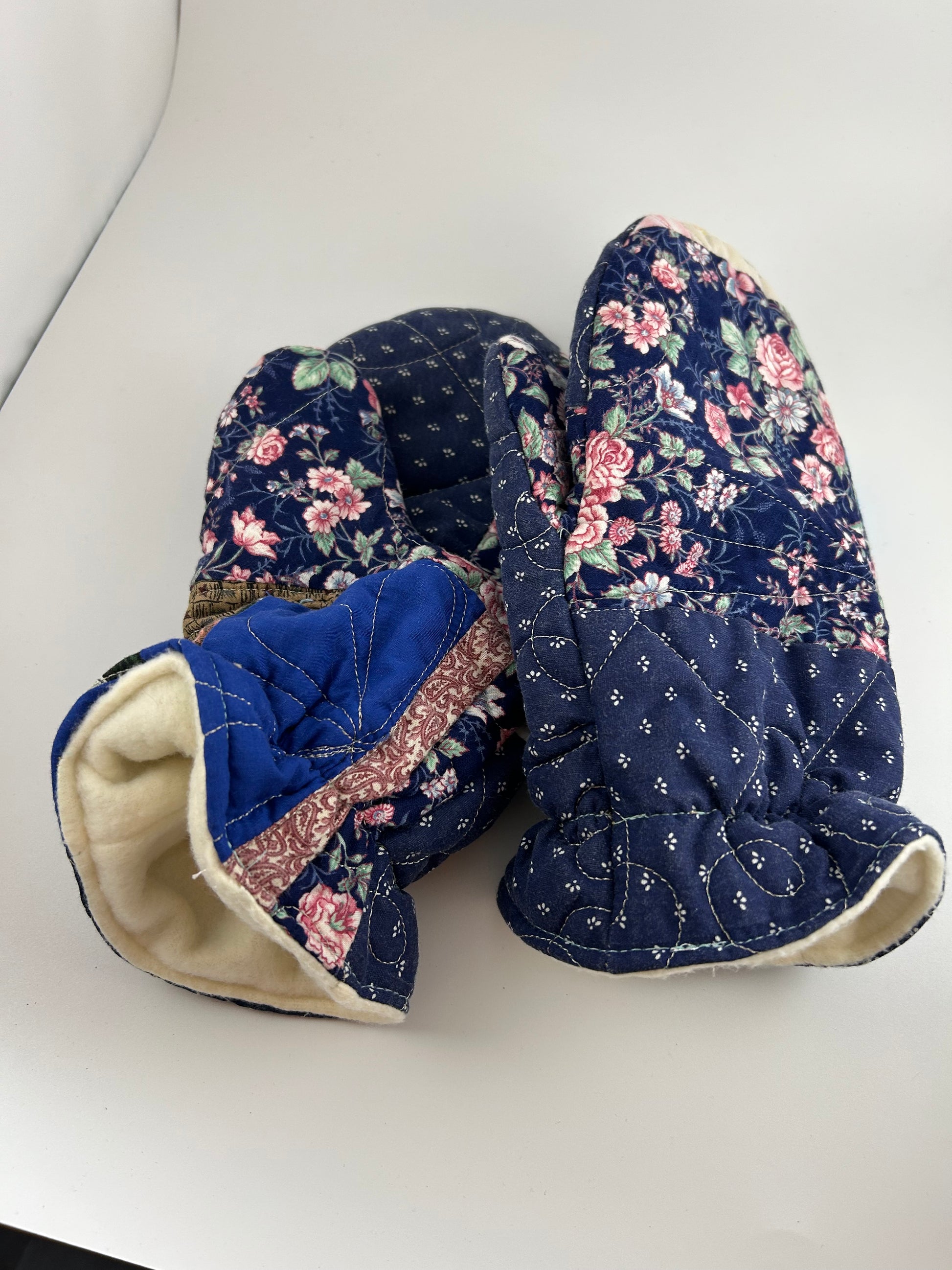 This quilt was in great shape aside from some stains and tears, which I cut around. Definitely machine sewn by someone who knew some tricks- the quilting is in many unique patterns! I believe all fabric to be all cotton. Lined with polar fleece fabric.